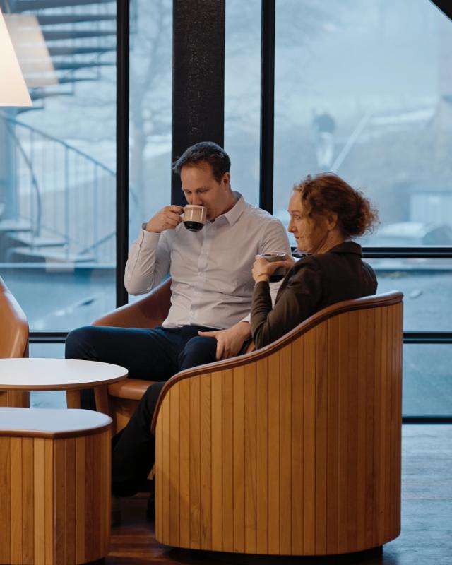 Kombinationen af forskellige kaffemaskiner sikrer, at kaffeløsningen matcher både tempoet i mødeområderne og behovet for en mere eksklusiv kop kaffe i andre dele af huset.