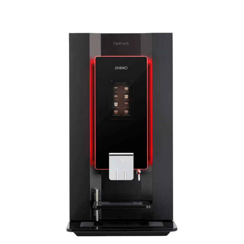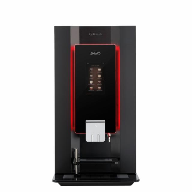 - Animo producerer avancerede kaffeautomater i et yderst moderne design, der bliver bemærket. Alle maskiner fra Animo brygger kaffe af premium kvalitet, er meget brugervenlige og slidstærke. Kort sagt; det oplagte valg til virksomheder, hvor der ikke gås på kompromis med noget som helst. Den lækreste kaffe serveret af maskine i eksklusivt design. Animo Optifresh imødekommer vores kræsne kunders ønsker og behov – både i forhold til kaffekvalitet, design, miljø og brugervenlighed. Maskinen serverer et bredt udvalg af friskbryggede drikke. Helt kort friskbrygget kaffe, nem at betjene og rengøre, kopregistrering så brygningen først begynder, når koppen er placeret korrekt, meget energieffektiv, let at installere, passer ind de fleste steder og er en yderst stabil model.