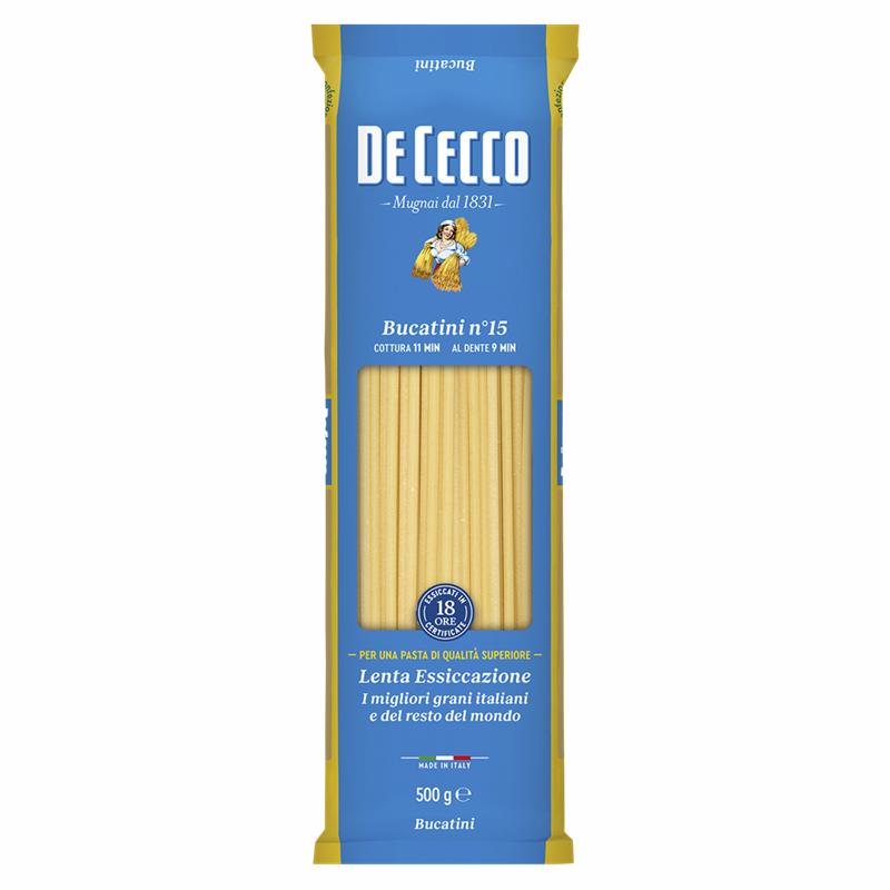 De Cecco Bucatini De Cecco Bucatini 20250150 Lang pasta med hul i midten og rundt tværsnit. 24 x 500 g Se mere