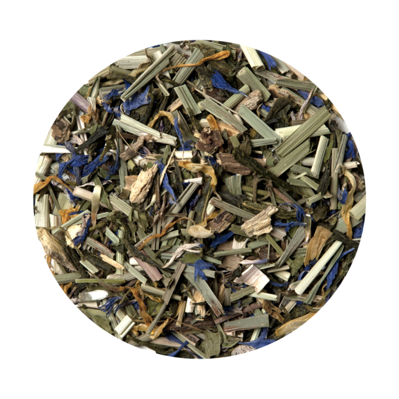 Lakridsrod/lakritsrot/lakrisrot(39%),grøn/grönt/grønn Ceylon te(33%), citrongræs/citrongräs/sitrongress(23%), naturlig aroma/arom, katostblomst/malvablomma, skåret solsikkeblomst/skuren solrosblomma/.Indeholder lakrids/lakrits/lakris – personer med forhøjet/högt/høyt blodtryk bør undgå for stort/högt/overdrevet indtag/inntak.