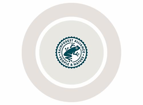 - Rainforest Alliance stiller krav til en mere miljøvenlig produktion, gode arbejdsvilkår og fair handelspriser.